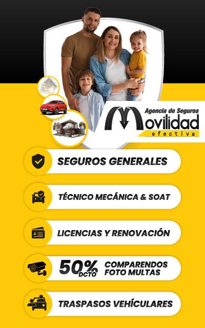 es una agencia de seguros y servicios integrales de movilidad que ofrece soluciones confiables para personas y empresas en todo el país. Su amplio portafolio abarca seguros de autos, motos, hogar, vida, PYMES y propiedad horizontal, además de trámites de tránsito como SOAT, técnico-mecánica, licencias y comparendos. Con presencia nacional, trabaja para brindar respaldo, agilidad y tranquilidad a sus afiliados, cuidando lo que más valoran: su seguridad y bienestar diario.